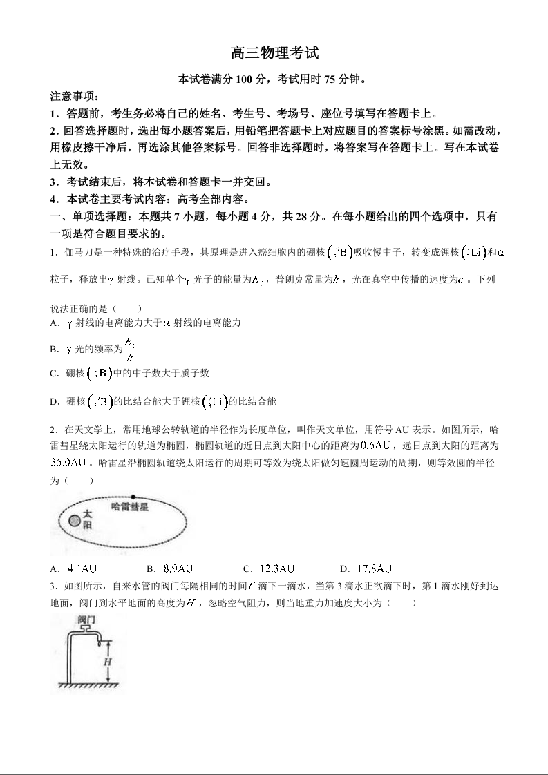 河北省邢台市邢襄联盟2024-2025学年高三上学期开学考试+物理