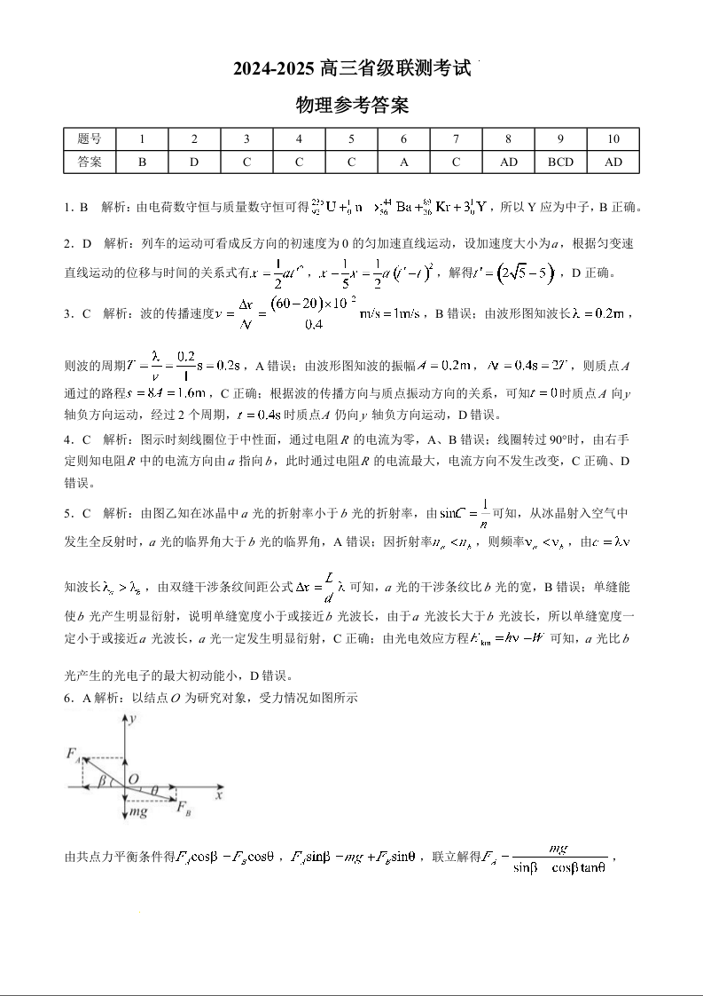 河北省2024-2025学年高三省级联测考试+物理答案