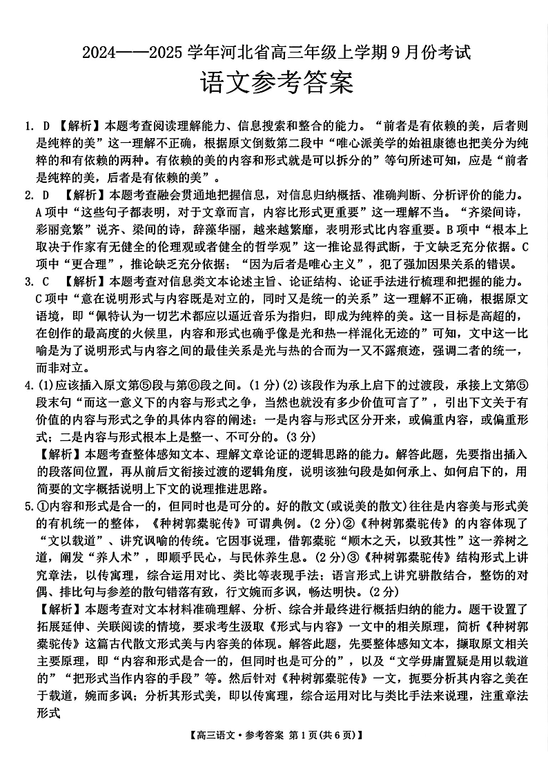 河北省2024-2025学年高三年级上学期9月份考试+语文答案