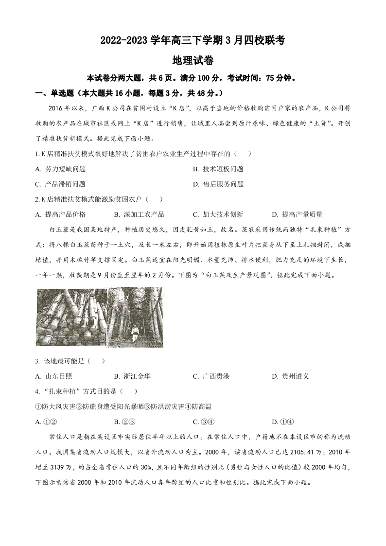 福建省南平市2022-2023学年高三下学期3月四校联考地理试题