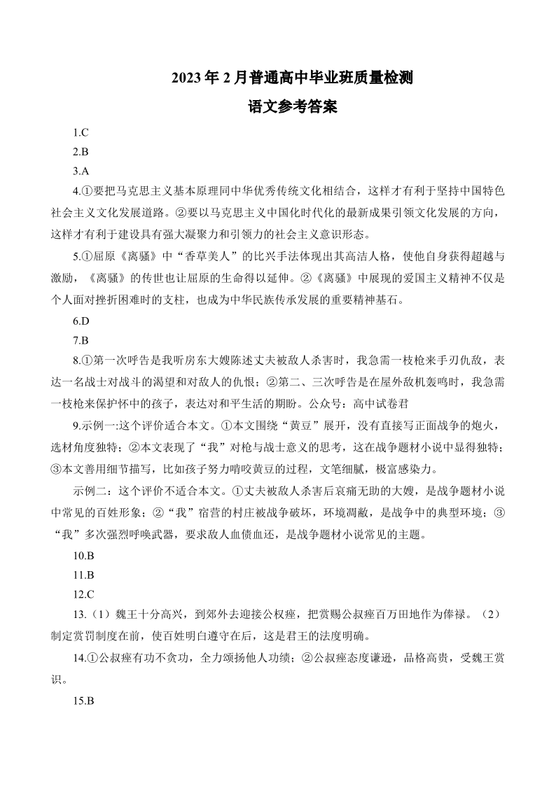 2023届福建省福州市普通高中毕业班质量检测(二模)语文答案