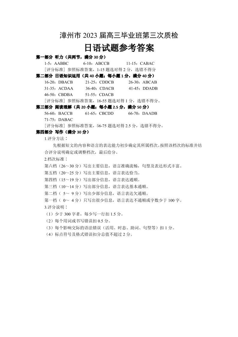 2023届福建省漳州市高三毕业班下学期第三次质量检测 日语答案