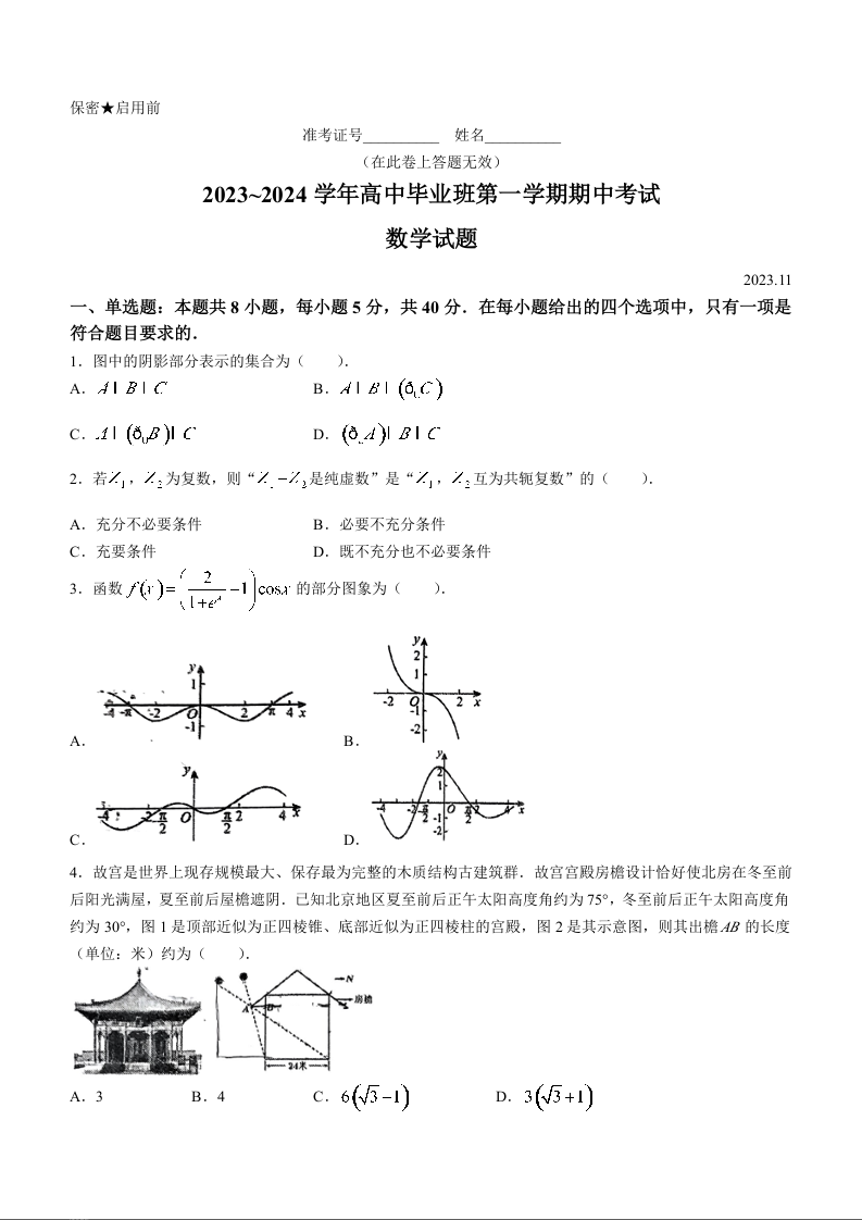 福建省百校联考2023-2024学年高三上学期期中考试 数学