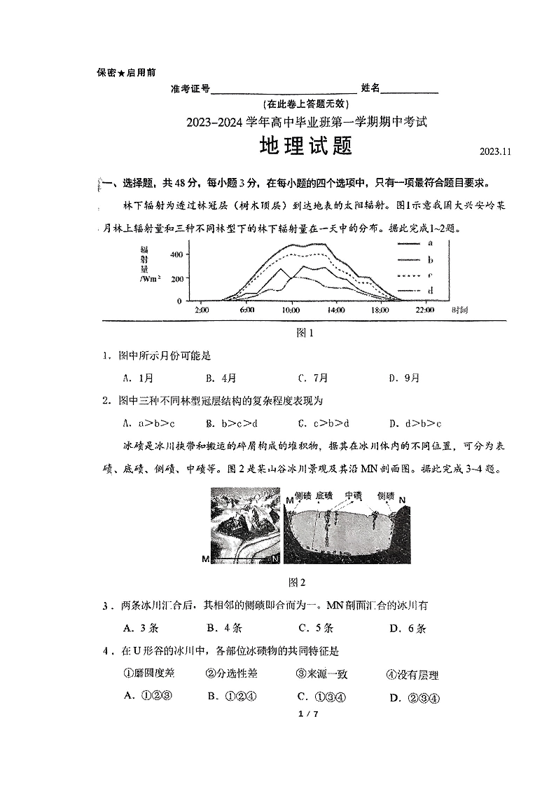 福建省百校联考2023-2024学年高三上学期期中考试 地理