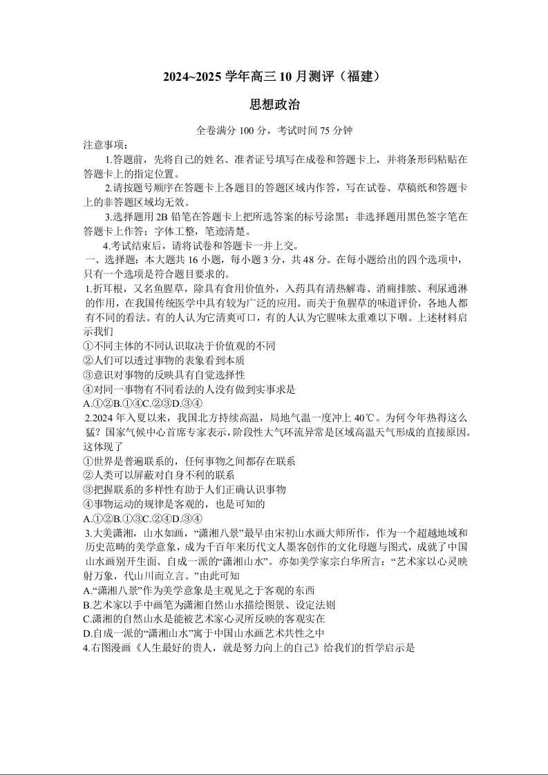 福建省百校联考2024-2025学年高三上学期10月测评+政治