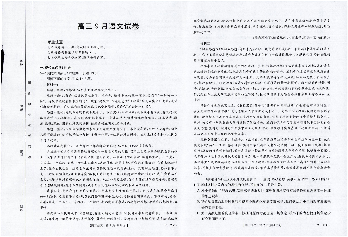 福建省部分学校2025届高三9月开学大联考+语文