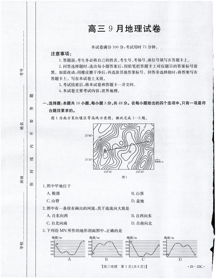 福建省部分学校2025届高三9月开学大联考+地理