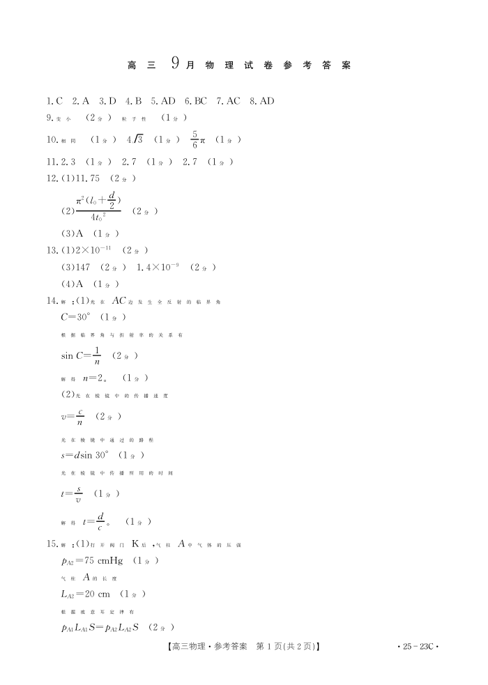 福建省部分学校2025届高三9月开学大联考+物理答案