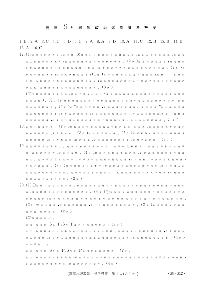 福建省部分学校2025届高三9月开学大联考+政治答案