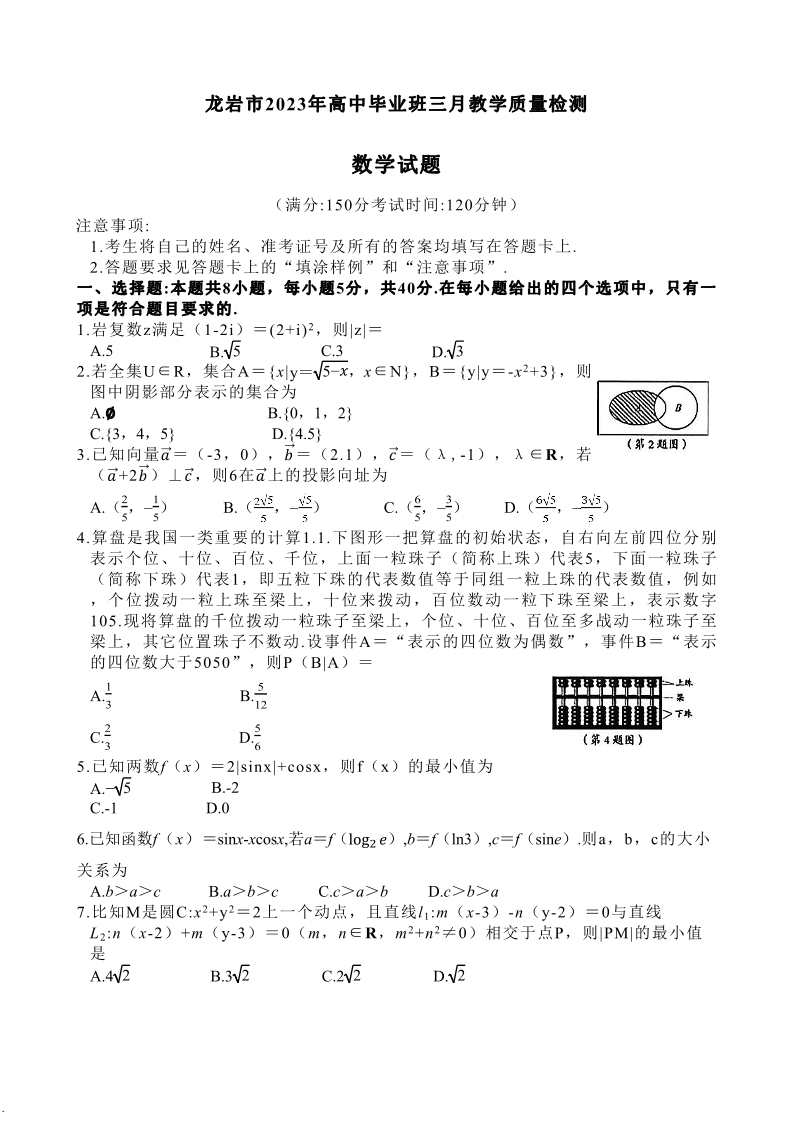 2023福建省龙岩市高三3月教学质量检测数学