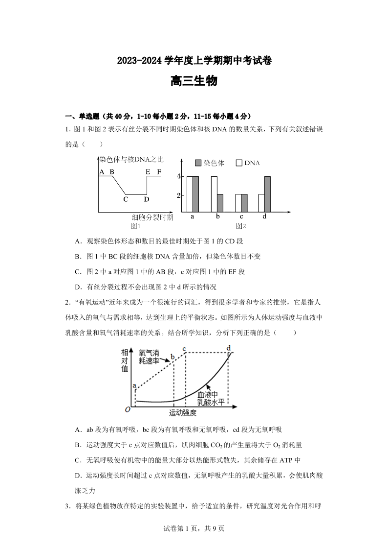福建省莆田锦江中学2023-2024学年高三上学期期中考试 生物