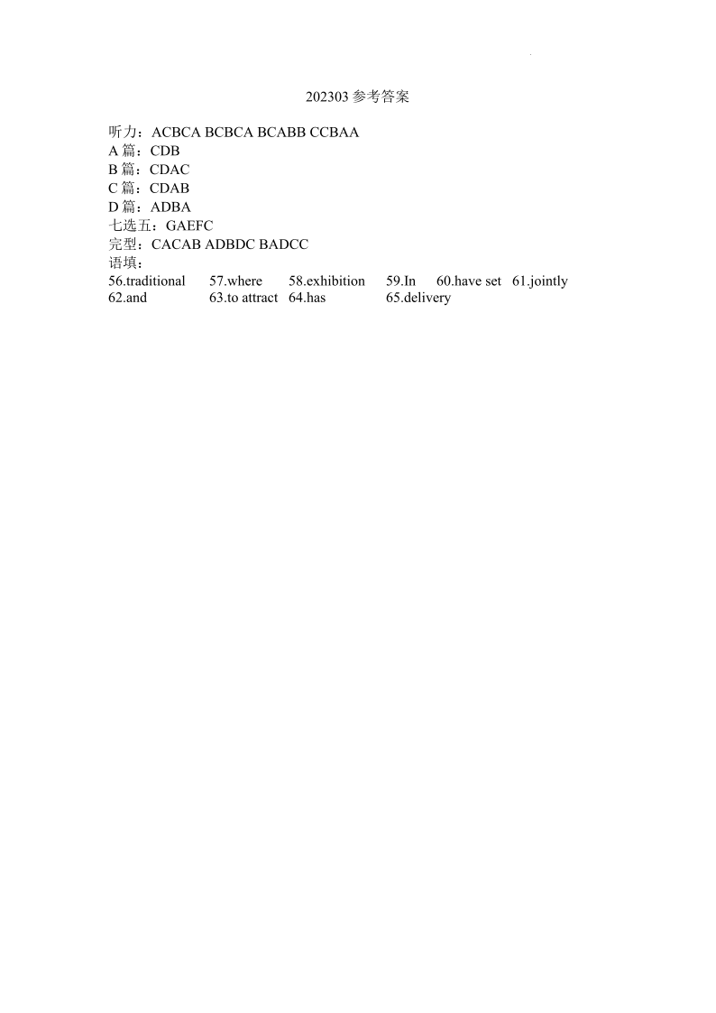 2023届福建省厦门市高三毕业班第二次质量检测丨英语答案