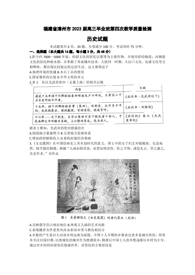 福建省漳州市2023届高三毕业班第四次教学质量检测 历史