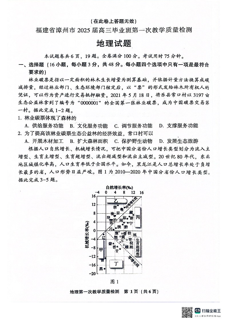 福建省漳州市2025届高中毕业班第一次质量检测+地理