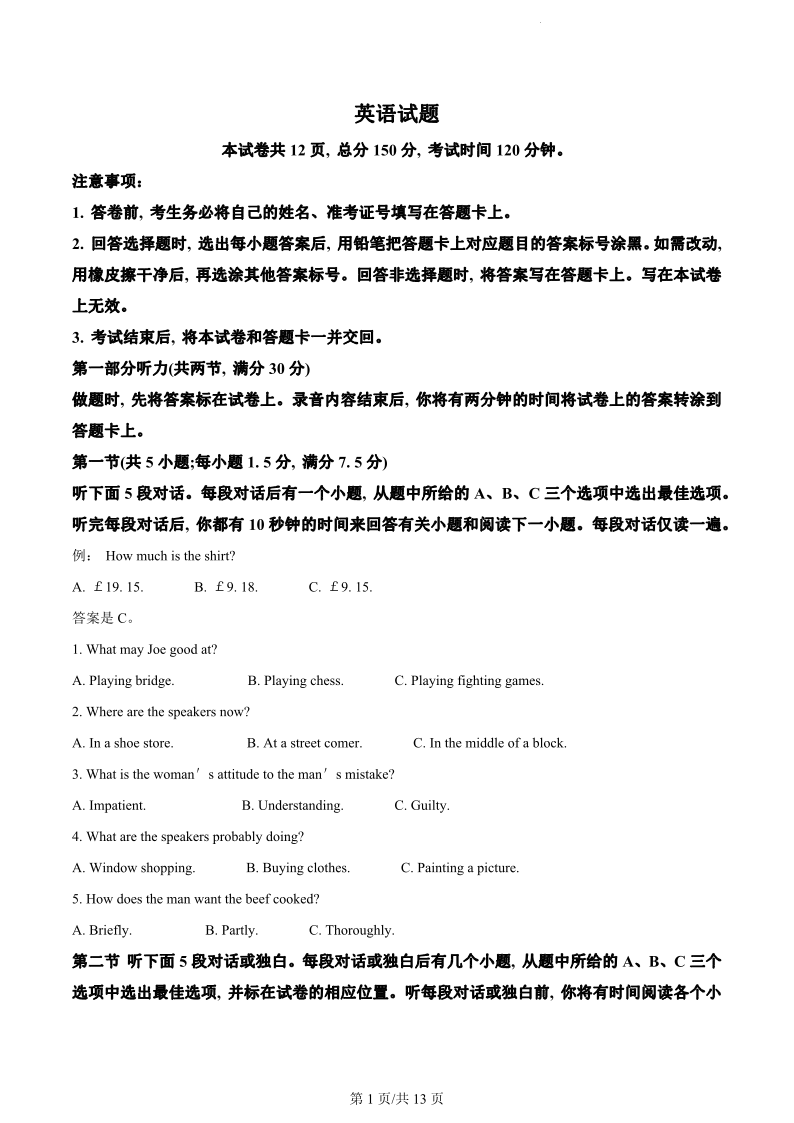 2023届福建省名校联盟全国优质校高三大联考英语试题