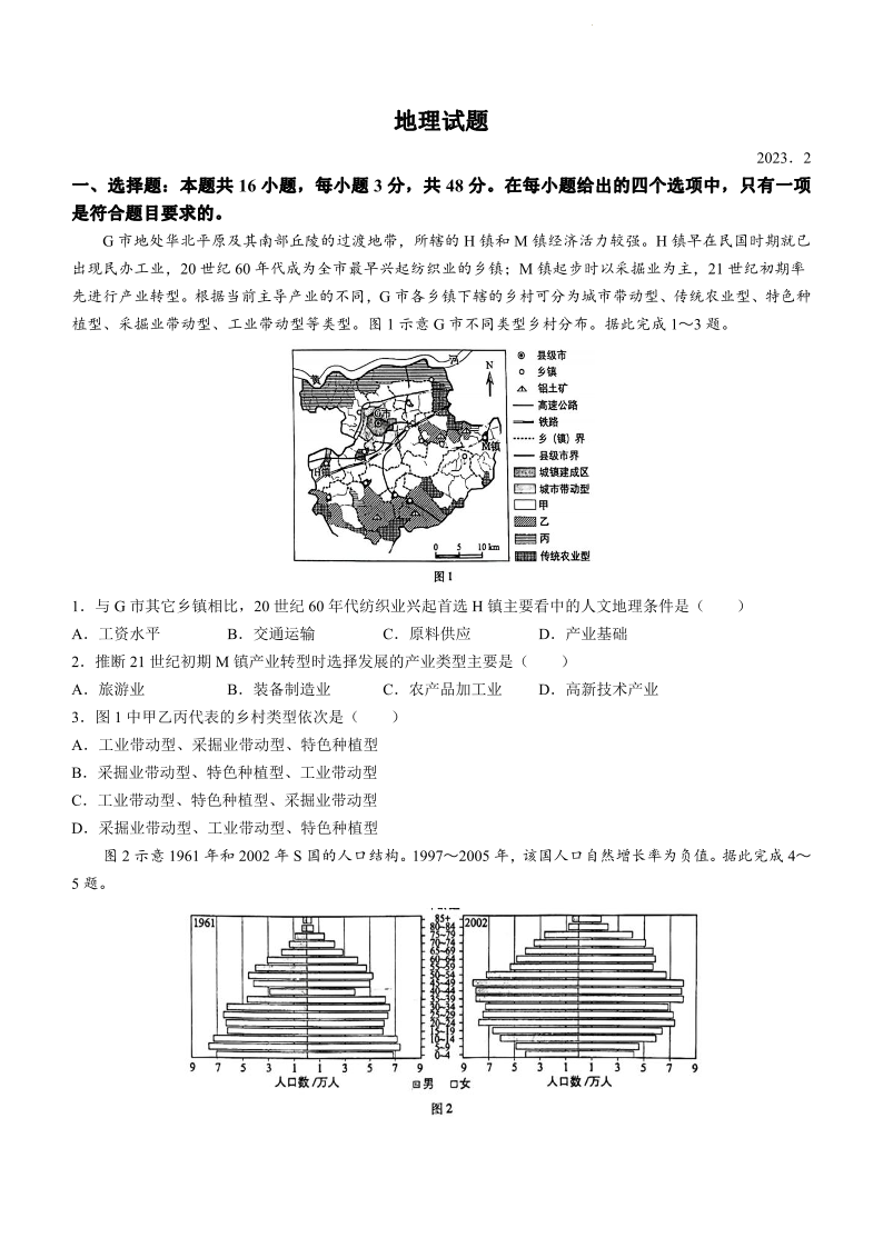2023届福建省名校联盟全国优质校高三大联考地理试题