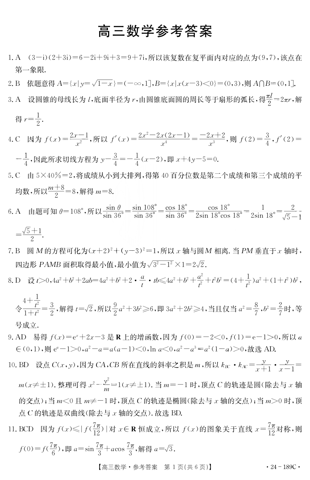 广东省部分学校2023-2024学年高三上学期12月联考 数学答案
