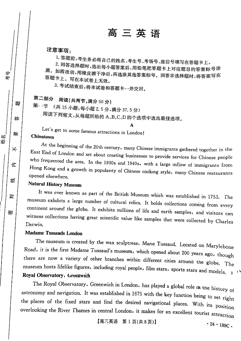 广东省部分学校2023-2024学年高三上学期12月联考 英语