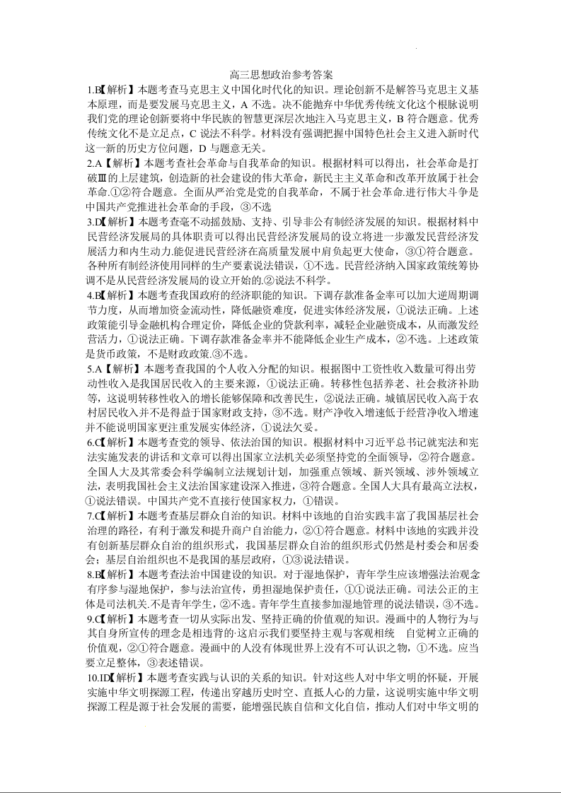 广东省部分学校2023-2024学年高三上学期12月联考 政治参考答案