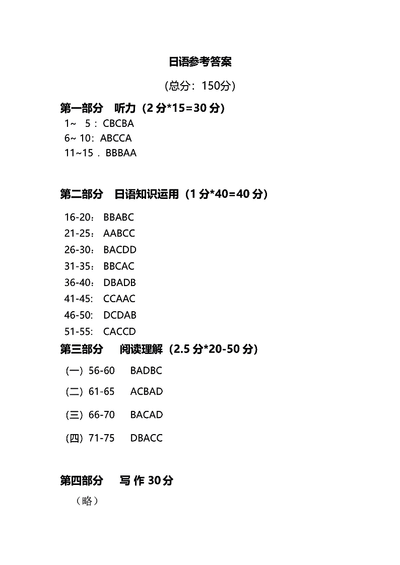 2024届广东省广州市高三上学期12月调研考试(零模)日语答案