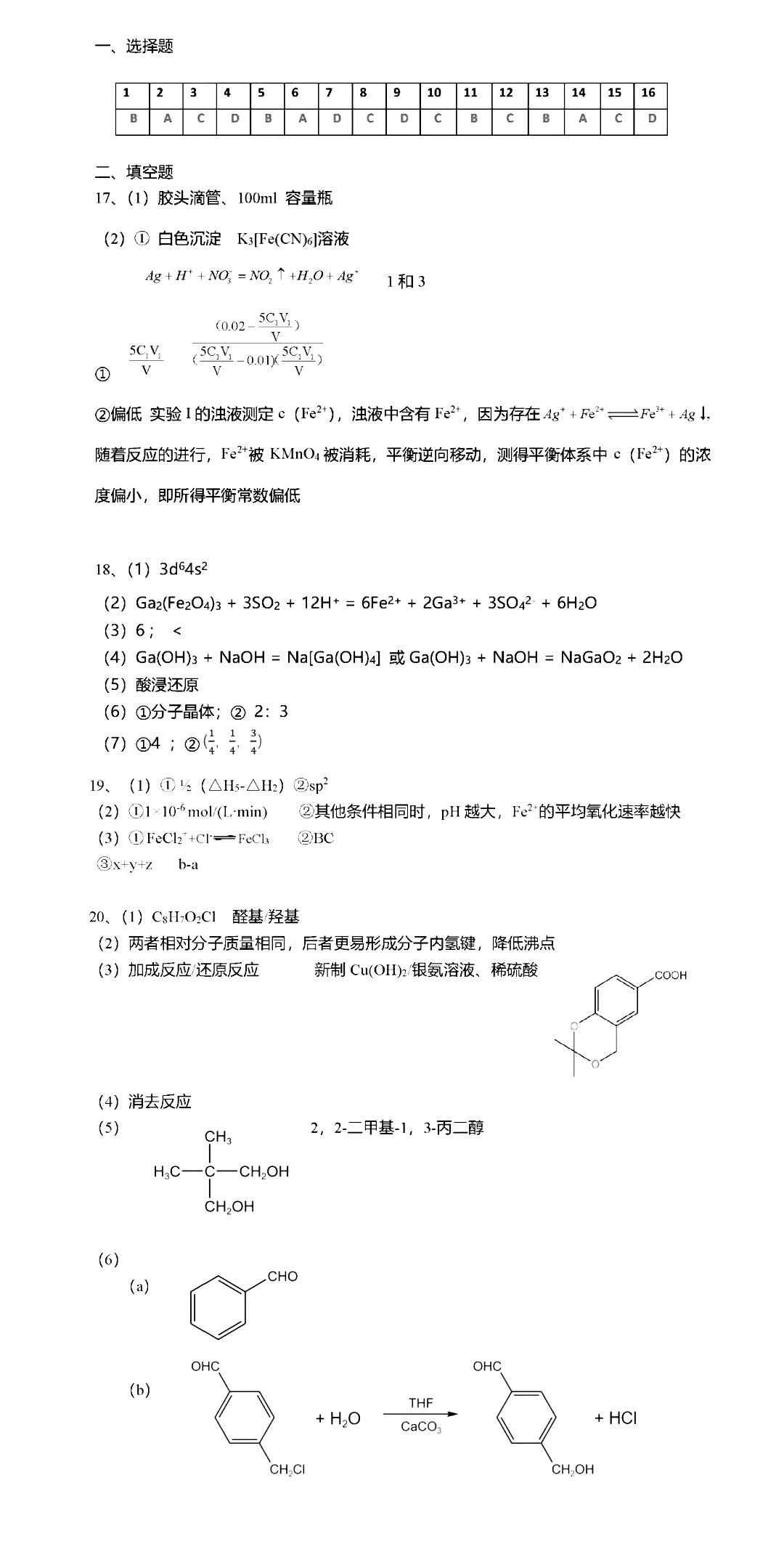 2024届广东省广州市高三上学期12月调研考试(零模)化学答案