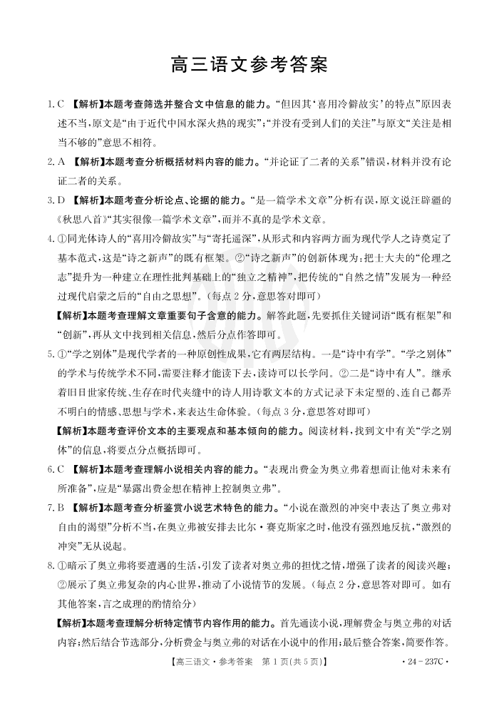 广东省部分名校2023-2024学年高三上学期12月联合质量检测 语文答案