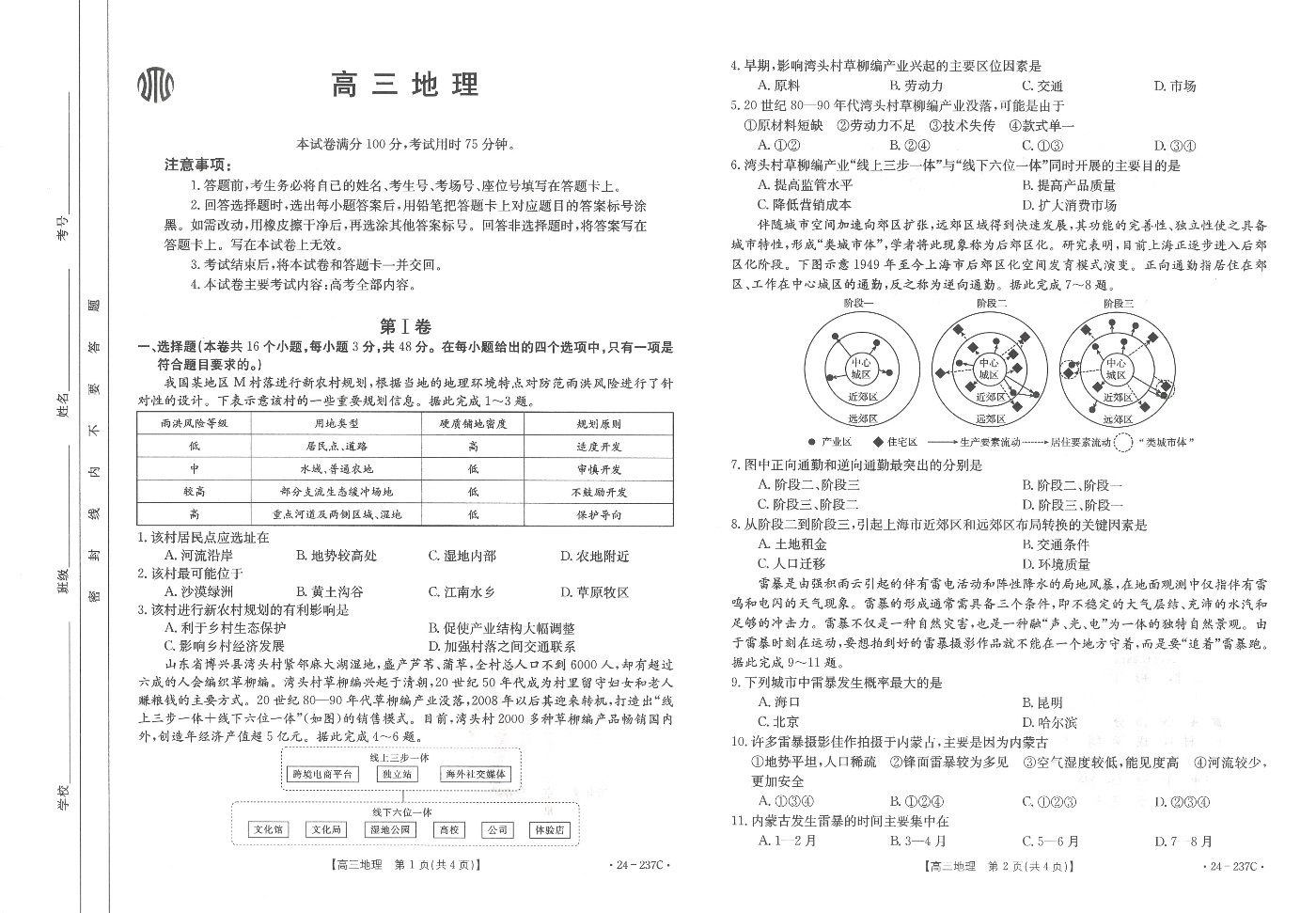 广东省部分名校2023-2024学年高三上学期12月联合质量检测 地理