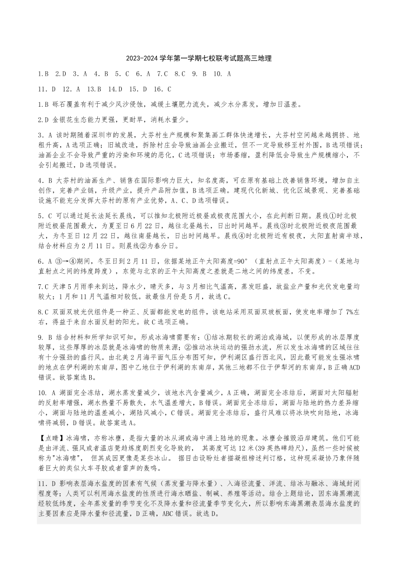 广东省东莞市虎门中学等七校2024届高三上学期联考 地理答案