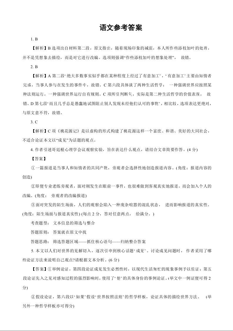 广东省东莞中学、广州二中、惠州一中、深圳实验、珠海一中、 中山纪念中学2024届高三第三次六校联考 语文答案