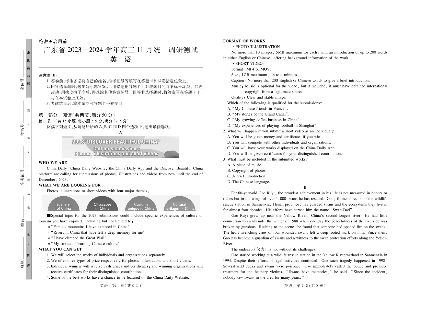 广东省2023-2024学年高三上学期12月统一调研考试 英语