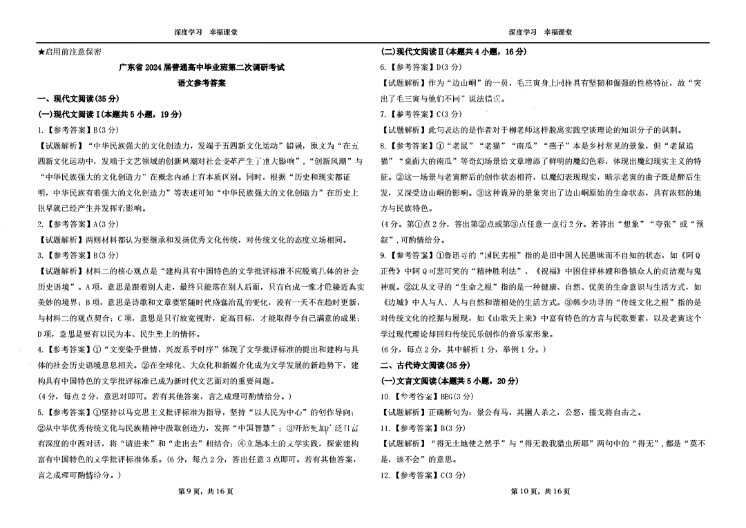 广东省普通高中(粤光联考)2023-2024学年高三上学期第二次调研考试 语文答案