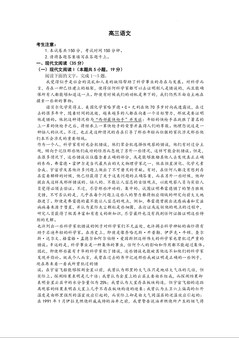广东省部分学校2023-2024学年高三上学期11月大联考 语文