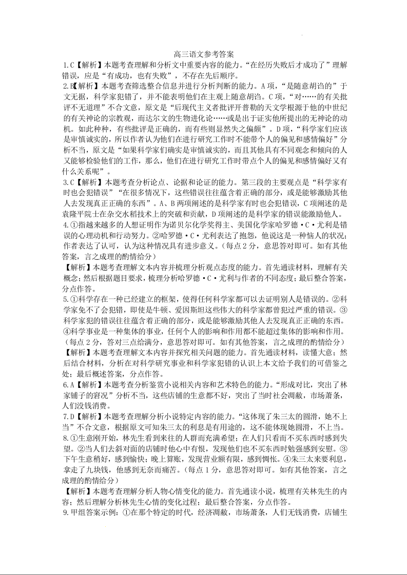 广东省部分学校2023-2024学年高三上学期11月大联考 语文答案