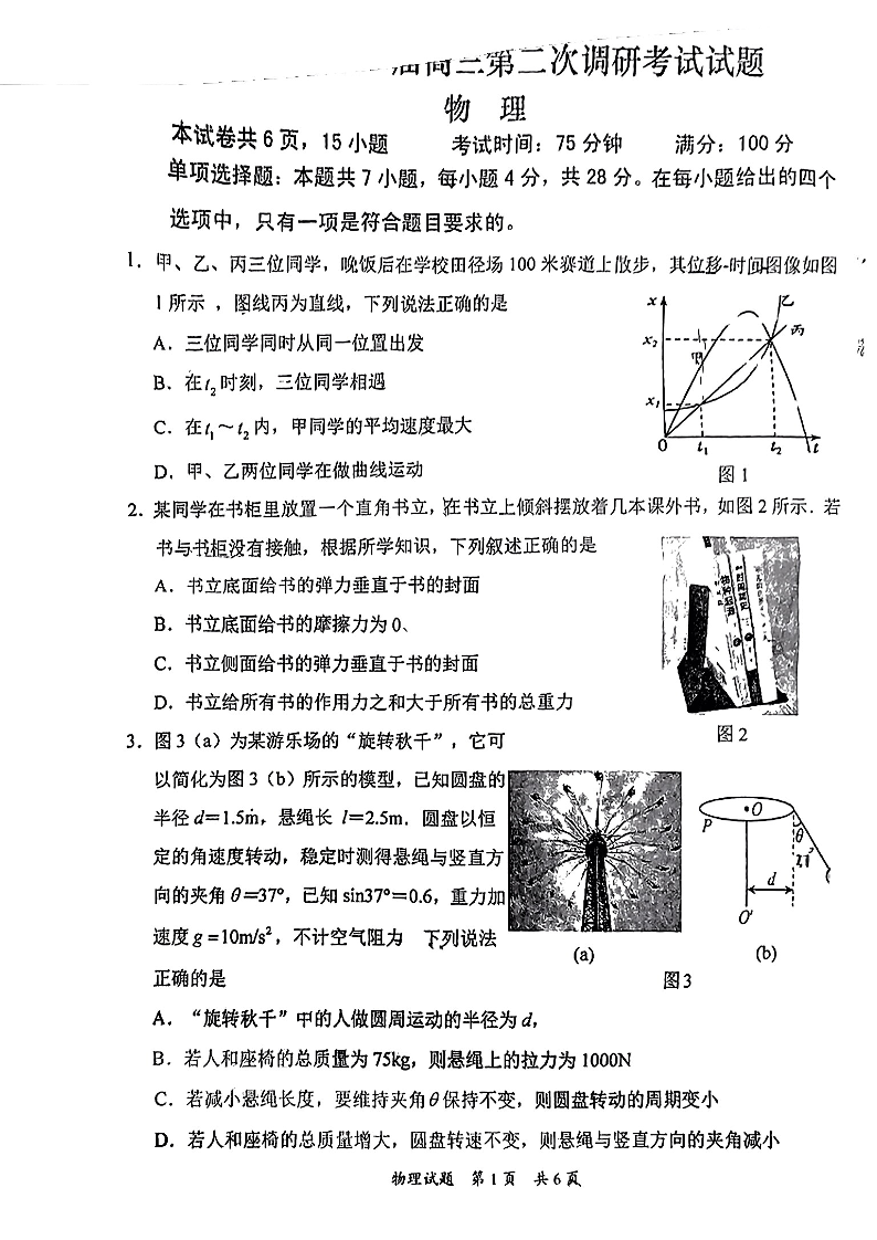 广东省惠州市2024届高三第二次调研考试 物理
