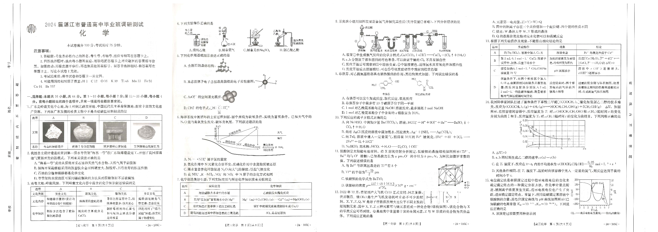 广东省湛江市普通高中2023-2024学年高三上学期10月调研考试 化学