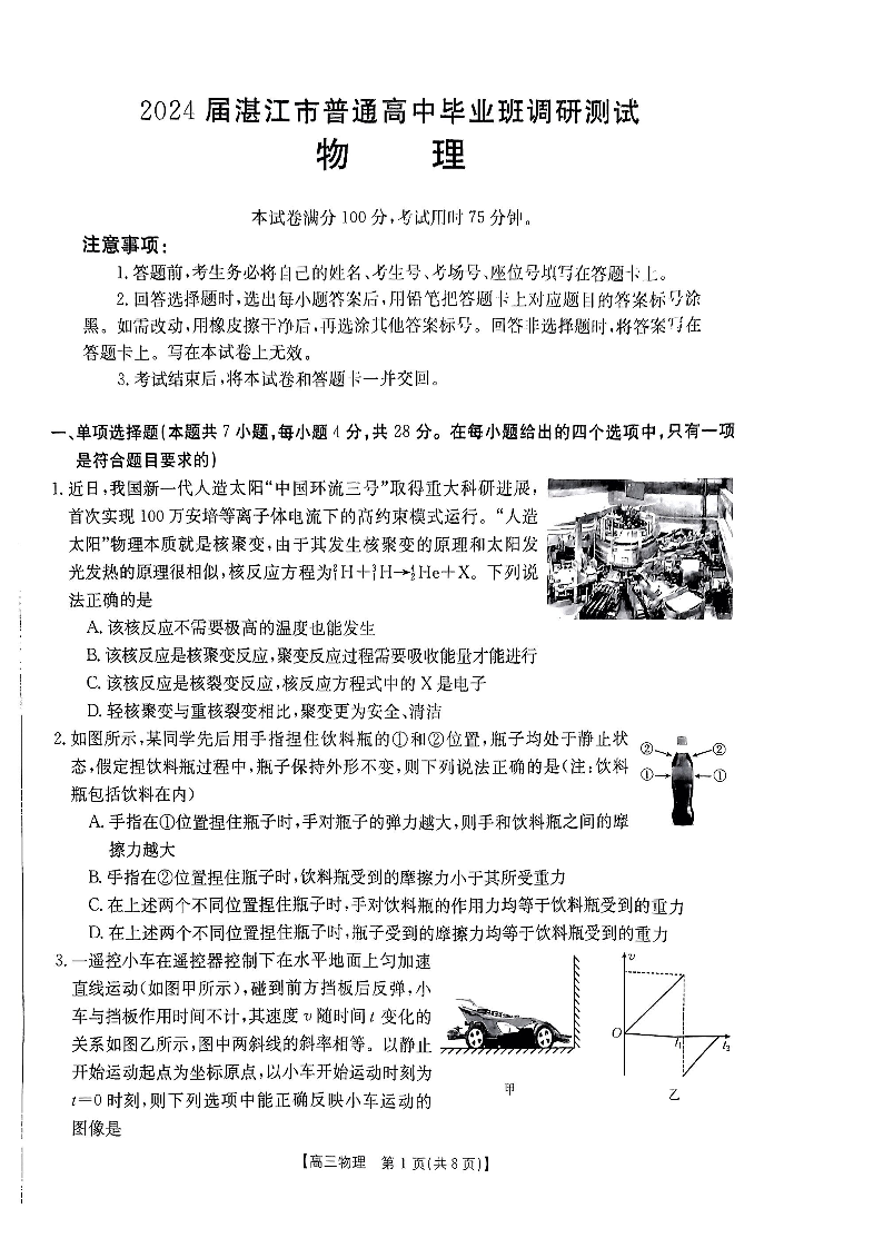 广东省湛江市普通高中2023-2024学年高三上学期10月调研考试 物理