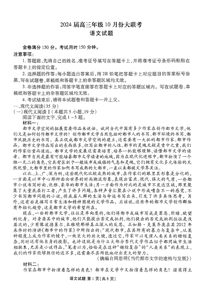 广东省衡水金卷2023-2024学年高三上学期10月份大联考 语文