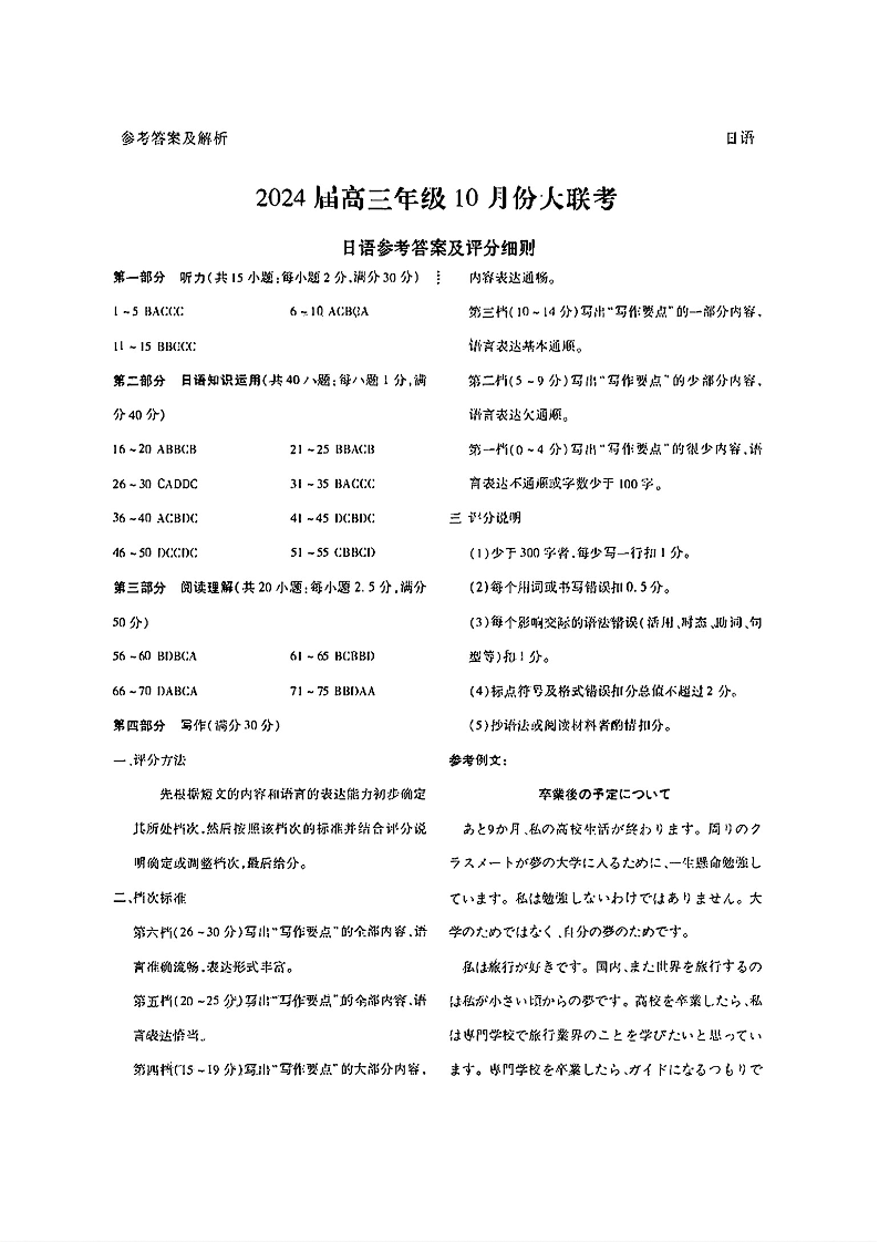 广东省衡水金卷2023-2024学年高三上学期10月份大联考 日语答案
