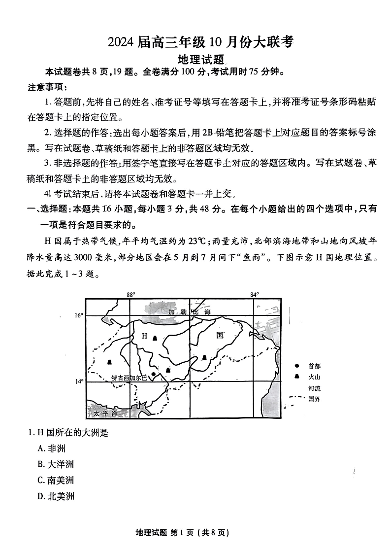广东省衡水金卷2023-2024学年高三上学期10月份大联考 地理