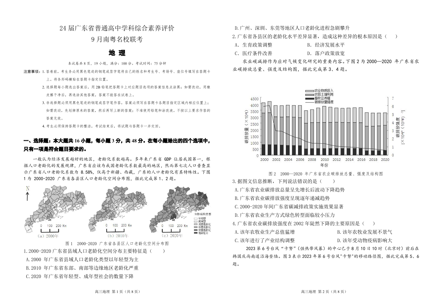 广东省南粤名校联考2023-2024学年高三上学期9月月考 地理