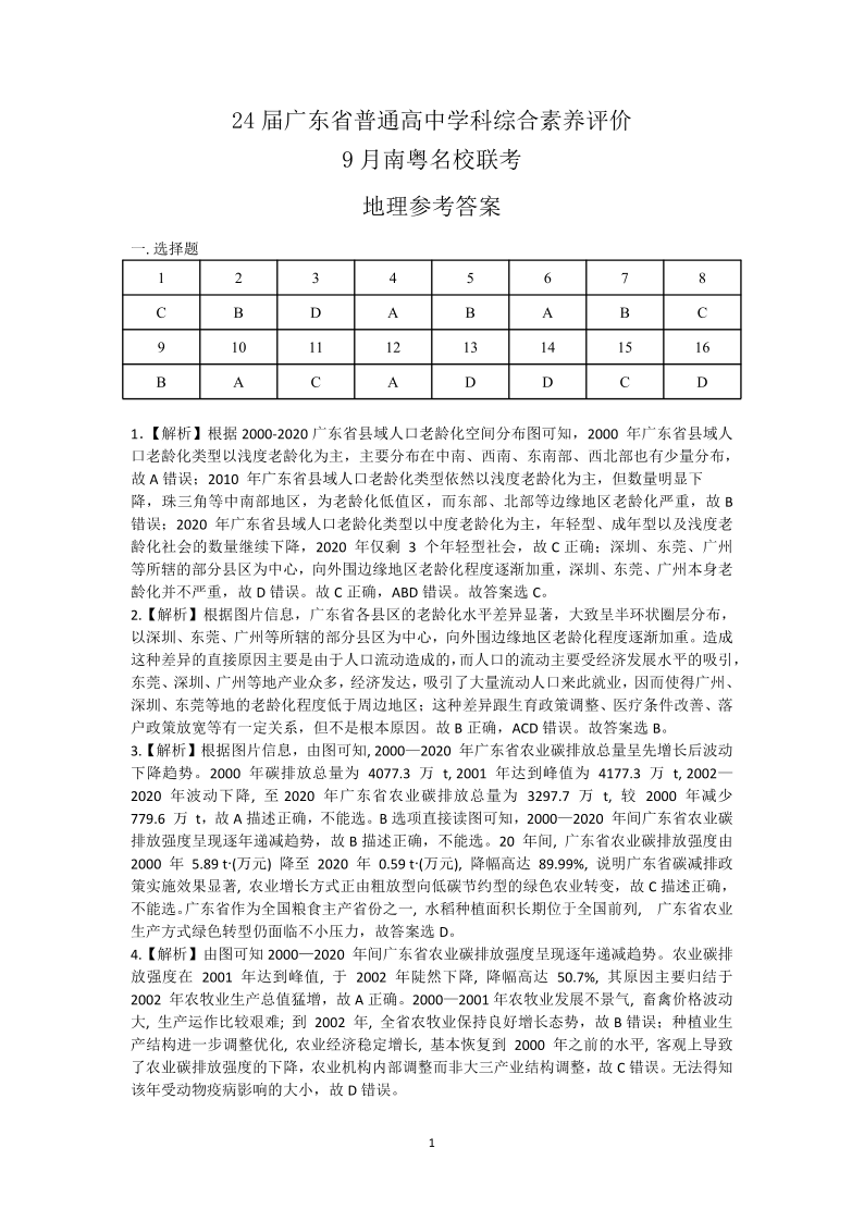 广东省南粤名校联考2023-2024学年高三上学期9月月考 地理答案