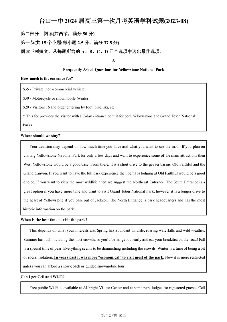 广东省台山市第一中学2023-2024学年高三上学期第一次月考 英语