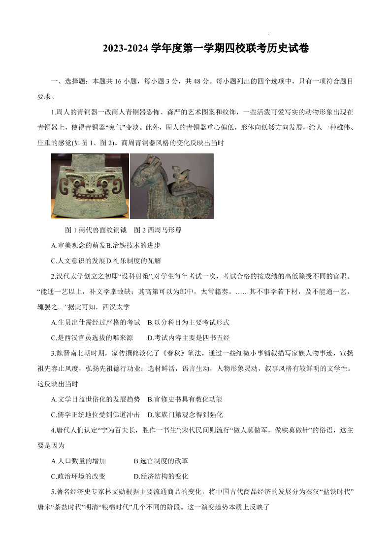 广东省四校联考2023-2024学年高三上学期第一次联考 历史