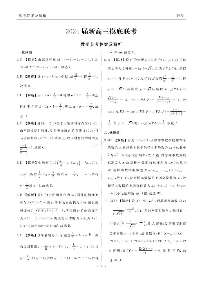 广东省衡水金卷2024届高三上学期摸底联考 数学答案