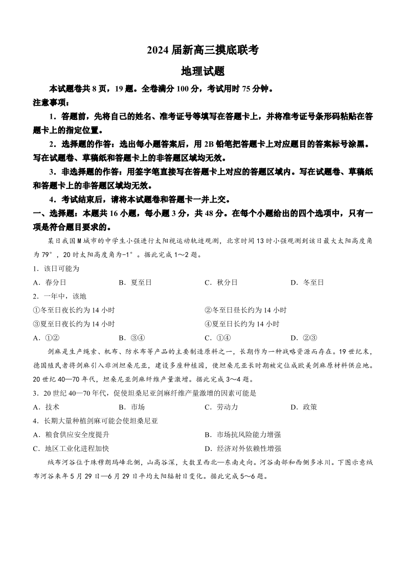 广东省衡水金卷2024届高三上学期摸底联考 地理