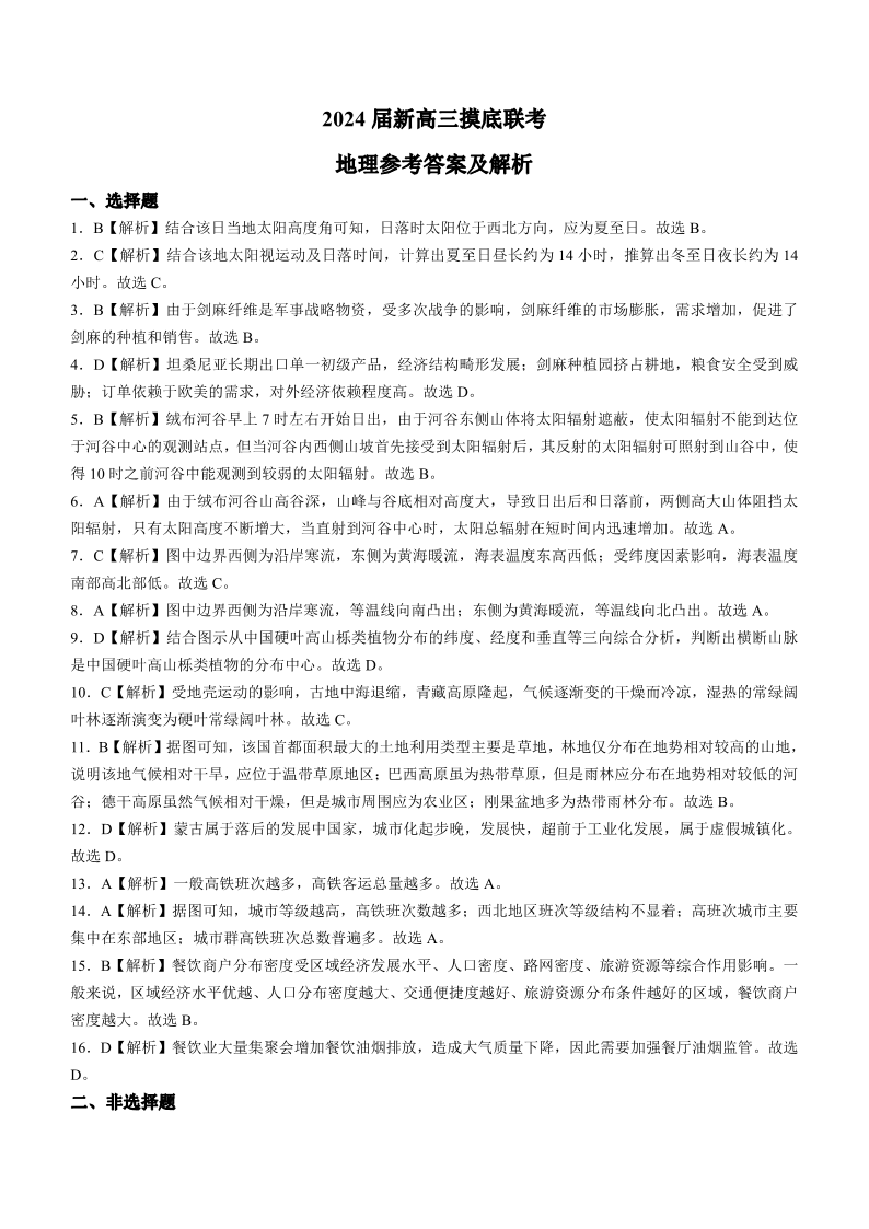 广东省衡水金卷2024届高三上学期摸底联考 地理答案