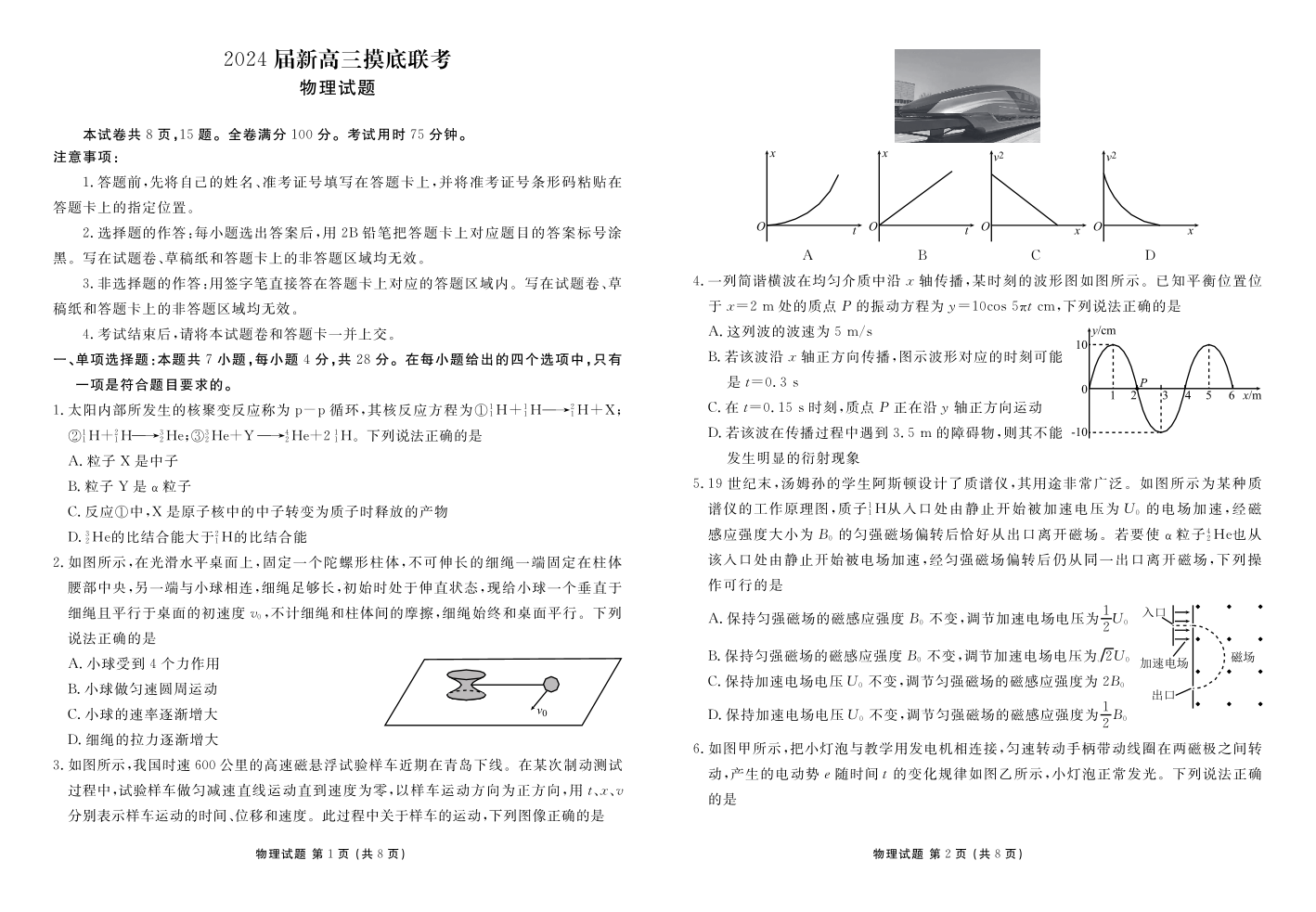 广东省衡水金卷2024届高三上学期摸底联考 物理