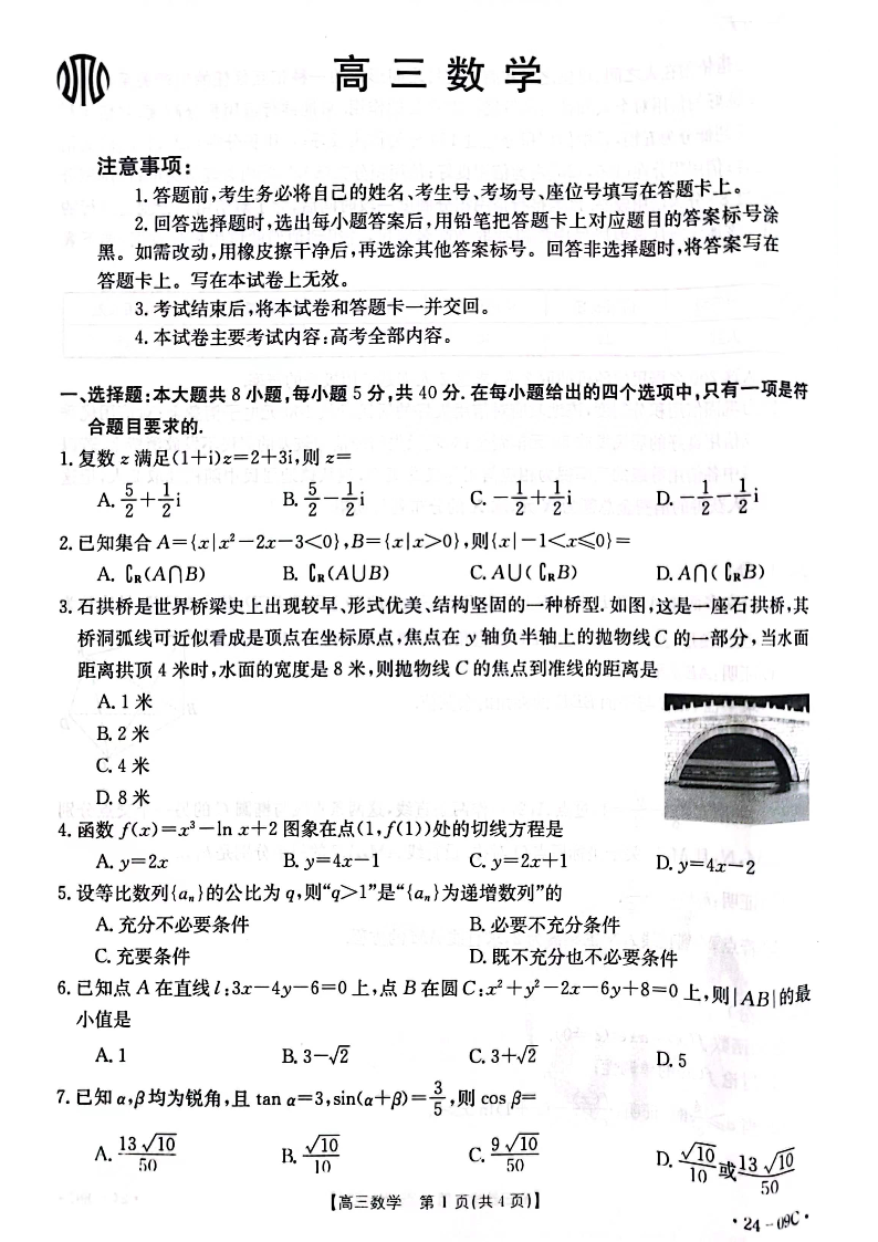 2024届广东省部分学校高三上学期8月联考 数学