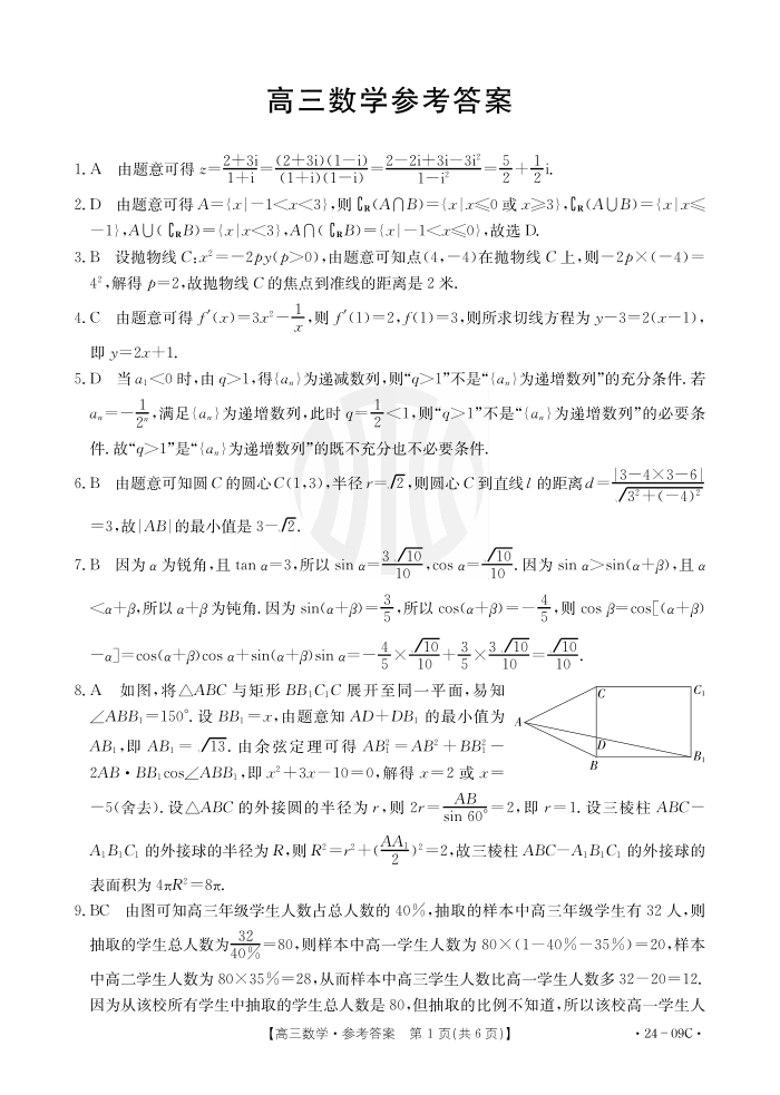 2024届广东省部分学校高三上学期8月联考 数学答案