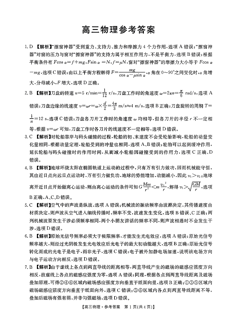 2024届广东省部分学校高三上学期8月联考 物理答案